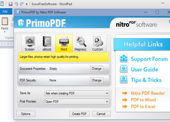 All the same features that I mentioned when talking about TinyPDF, are pretty much also available in PrimoPDF. When it comes to PDF printing software, these two take the cake in my opinion. PrimoPDF has a slight advantage.