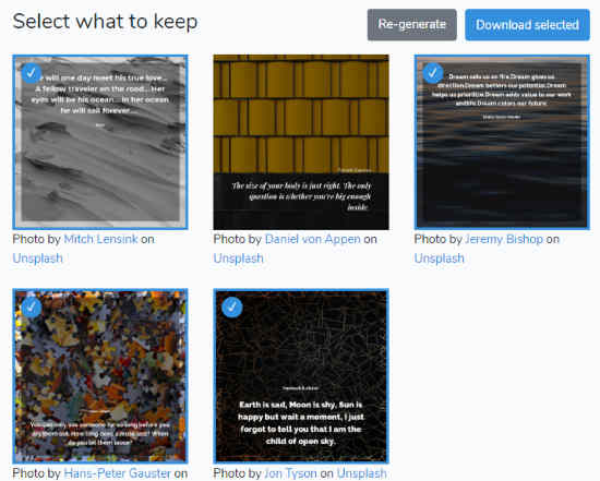 Thereafter, you can generate images. Also, you will notice that each image has different quotes and backgrounds. Here, you can select those images which you want to download.