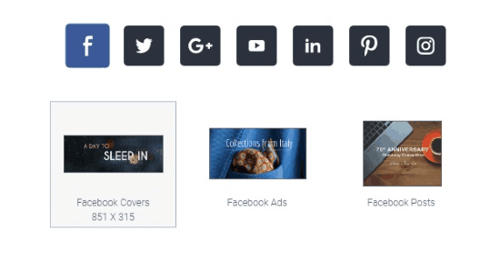 Here, you can create custom graphics size or choose the social media platform to get dimensions automatically. Then, this quote maker provides you several templates. You can choose any of them to edit.