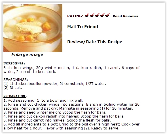 Next in the queue to learn Chinese cuisine is Cooking-China. There are lots and lots of recipes on these websites that you can learn, and the website keeps on adding new recipes from time to time. The home page of the website has an index, wherein different categories of dishes are provided. Some of these categories are Chicken, Soup, Tofu, Vegetables, and more. Each of the category has multiple dishes with their written recipes. The recipes are pretty elaborate in nature and also contain images of the item concerned. What’s interesting is that it also has the option of allowing you to email a particular recipe to your friend. You can even review or rate the recipe based on your experience.