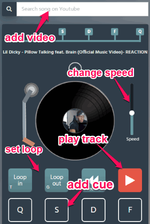 Youtube DJ is no doubt one of the best free online YouTube DJ mixer which can help you easily mix YouTube music like a professional DJ. It allows you to directly search YouTube videos on the DJ mixer and then add two of them on the decks. After that, you can play the videos as musical tracks and start DJing at the same time. It lets you add cues, set loop, adjust volume, and most importantly crossfade the tracks. It also comes with a unique feature which allows you to control the speed of the playback for both decks separately.