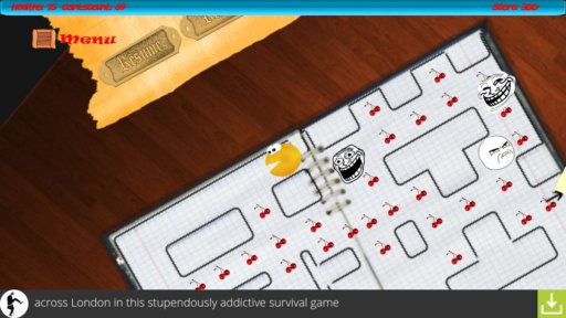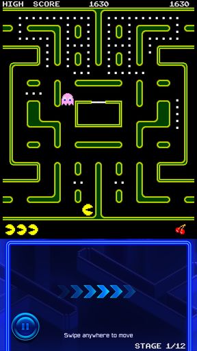 It has much more intuitive controls, the giant box at the bottom of the screen. Instead of having to hit arrows, just drag your finger in the direction that you want the Pacman to go. Key feature of this version of Pacman is the support for online tournaments where you can play against other players for the title of the best in the world.