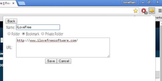 This password protected bookmark extension has folders for sorting bookmarks. When creating folders they can be setup to have password protection (Private folder option) or they can have “free for all” access. Password can be set by clicking on the Set password button in the top left corner of the extension drop-down window. Extension is completely controlled from the top right corner icon.
