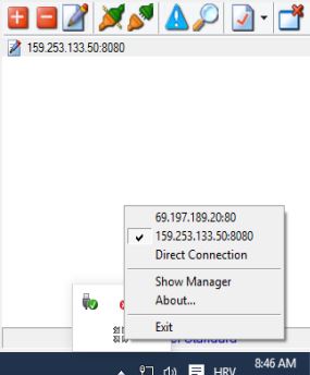For quickly switching between proxies, you’re going to have to right click on the system tray icon. This will open up a quick list of proxies which can then be applied globally, to all web browsers configured to use system proxy settings.