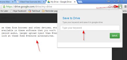 So that all those who like to save text don’t feel left out, I decided to include another save to Google Drive extension which saves text from web pages.