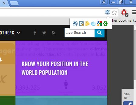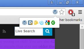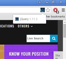 Icon is also added to the right hand side of the address bar in case supported resources is found. Left click on the icon activates a pop-up where icons of all the other web libraries and resources used on the website are going to be displayed. Mouse hover over an icon will display the name and version number of the associated resource behind it.