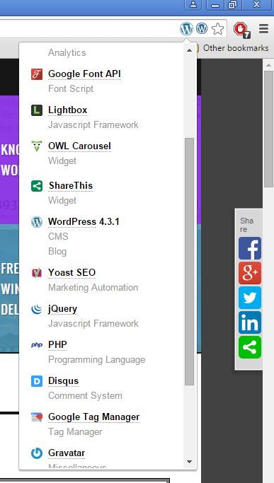 Wappalyzer is an even more advanced script library detector extension than Appspector. So much so that it can even detect which plugins a WordPress blog is using.