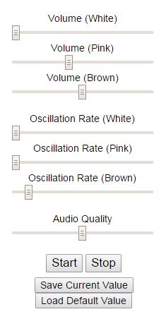 It features a configurable HTML 5 player, where you can create a sound mix of your own. Mix of white, pink or brown noise is possible to setup, and then you can additionally tweak oscillation rate for each of the selected sounds. On top of that you can setup the overall audio quality. Once you hit the “Start” button, sound mix starts playing right away. Playback can run on an infinite loop or a timer can be setup to turn off the sound in X number of minutes.