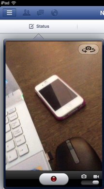 You also get the option to record videos and share them with your friends right from the app. To record a video click on the status tab and a window like shown below will open up. The pop up will ask to create a video or take a pictue. Once you are done recording, you can go ahead and share this video on your wall. You also get the regular options to tag friends in the video, add a location to the video and choose who can view the video.
