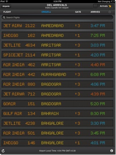 On top of this, the app lets you search the FlightBoard for your favorite airport. Just enter the airport and the app will give you live FlightBoard with complete flight information on your iPad. The interface of the FlightBoard provided by the app looks like the ones you find at airports.
