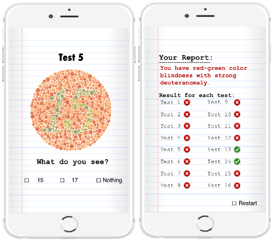 Color Blind Test is the last iPhone app on my list which you can use to check for color blindness. This iPhone app can tell you if you have any type of color blindness or not by taking an eye color vision test. It conducts the Ishihara test for checking out any type of color blindness. The steps to conduct an eye vision test with this app are simple, just download it from the link above and then tap on its main screen. After that, the test starts automatically and you will see an Ishihara color plate from which you have to identify the number. Select a number from the options or the “Nothing” option if you don’t perceive any number from the color plate. After the test is over, you will see a test report and the overall number of correct and incorrect answers. In the report, you will get to know if you have color blindness or not.