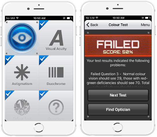 Vision Test is one of the most advanced iPhone apps to test color blindness on my list. There are many other eye tests that you can do with this app like Visual Acuity to check for clarity of vision, Astigmatism test, and, Duochrome test. The best part is that you can take all of the eye tests one by one and after a test is completed, you can see the test results. In addition to these tests, this app can also find a nearby optician for you (not in all regions). To check for the color blindness, this app also takes the Ishihara test. You will see some color plates and you have to identify the numbers on them from the options. After the test is over you can see the color eye vision test. The app tells you if you have any eye color vision syndrome or not. It also tells you about the wrong answer and how people with the normal eye vision would perceive that color plate.