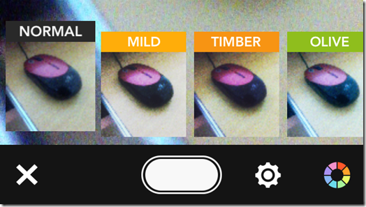 You can also add different effects to the photo in real time while clicking the picture by tapping on the icon at extreme right corner. Some of the effects that the app offers are: Mild, Timber, Olive, Siesta, Classic, Pastel, etc.