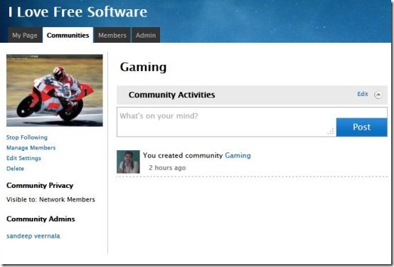 Companies who are worried that their employees might be spending too much time on public social networks like Facebook can switch to Clearvale. Clearvale is a very simple business social network with few options and 1GB storage space. It does not provide any chat option; so you will need to use separate intranet chat software for that (or, just go with Yammer). Clearvale offers a paid version also with additional options like monitoring, twitter monitoring, RSS feeds, etc. But the free version is good enough.