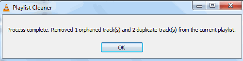 Step 7: Keep both options enabled and press OK button. After this, it will automatically scan whole playlist, and remove duplicate/removed files from your VLC playlist.