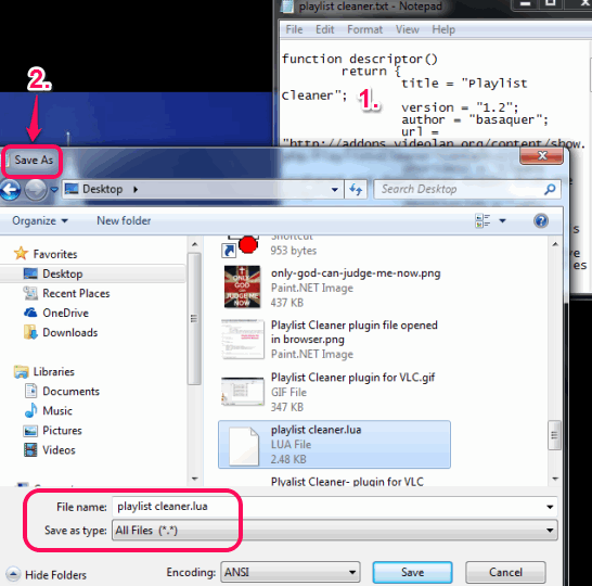 Step 3: Rename the Notepad file as Playlist Cleaner.lua.