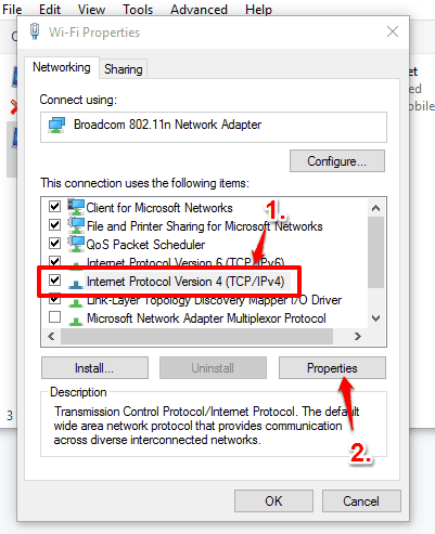 select IPv4 and click Properties button