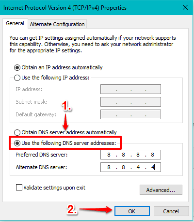 If you face any trouble, you can revert changes. Just repeat above steps, but this time, you need to select "Obtain DNS server address automatically", and apply the changes.