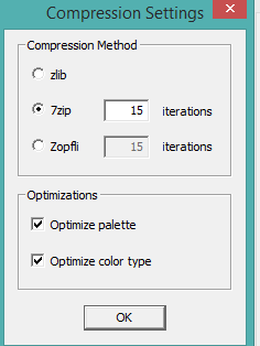 Step 5: Use Compression Settings button that will help to optimize the size of APNG file. You can use zlib, 7zip, or zopfli option for adjusting the compression level. Apart from this, you can also optimize color settings by enabling the Optimize palette (color palette) and Optimize color type option.