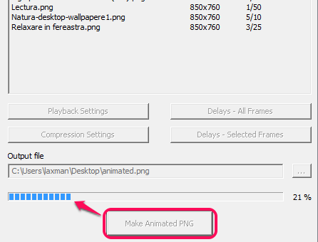 Step 6: In this final step, you can select destination location for the output file. After this, tap on Make Animated PNG button. Process to generate APNG file, will start which won’t take much time.