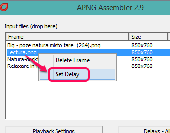 Add time delay in seconds and click Set button. You can also use right-click context menu option to select time delay for selected images.
