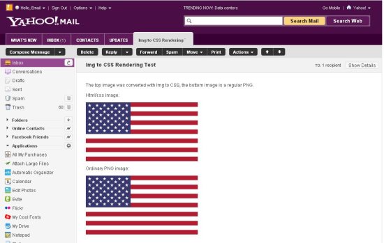 Images converted using Img to CSS display perfectly in all popular email clients. It has a neat compression algorithm that makes the HTML/ CSS image as small as possible. Also you get the option to specify a custom background color when converting transparent images.