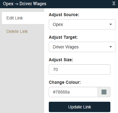 When you have written a JSON script, you can load it in this online Sankey diagram editor. After that, it will generate the Sankey diagram based on that JSON code. Now, if you want to update the link between the two nodes, then you won’t have to update the code. It lets you do it in a GUI manner; click on any link to select it and then select its source node and the target node. You can also specify the value or size of the link. Click on the Update Link button to change the link between nodes.