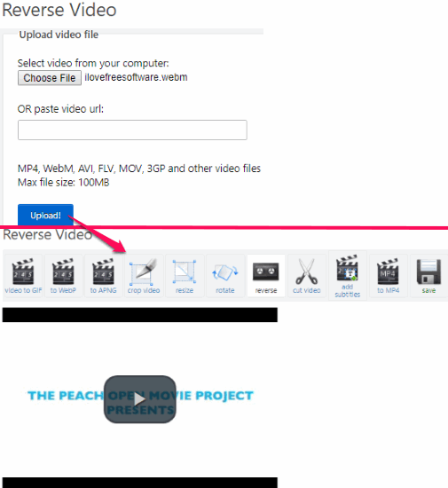 EZGif is a free website to edit WebM files online. You can use it to cut, crop, rotate, reverse, etc. WebM files and also other formats. In addition to that, you can also convert videos to GIFs and APNG. So, if want to convert your WebM files to animated GIFs and APNG format then you can count on EZGif. The best part is that it skips the registration part and you can directly use its online WebM editor functionality and perform basic video editing tasks. Go to the link provided above and then upload a WebM file. After you upload the video, its main video editing interface will appear as shown above. All the video editing options are available at the top, where you can select any option to use it. Like, if you want to crop the WebM video then click on the “crop video” option at the top which will open its interface to crop the video. You can perform other video editing tasks in a similar fashion and finally when you are done, switch to the “Save” section to export the edited WebM file as WebM file itself.