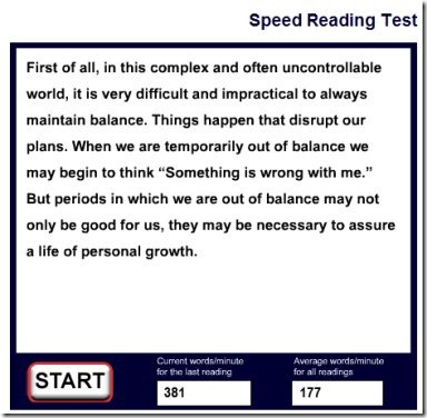 SpeedReadingcd is free online reading speed test. With the help of this free service offered by this website, you can easily know the number of words read by your per minute. In addition this free service even shows you the average number of words read by your per minute. Unlike other such kind of services, this free tool offers very short and different passages to read everytime you take the reading test. For taking the test, you need to click the START button and start reading, now whenever you finish reading simply hit the Stop button. And this service will instantly show you the results.