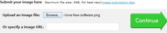 Step 1: It is a very basic step that is used to upload an image. You can add any tiff, jpg, png, etc. format image from your PC. If you want, any online image URL can also be added. Once image is added, tap on Continue button.