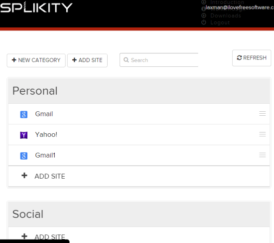 You can also add websites and create categories by accessing the dashboard of your Splikity account. Login credentials of each saved website are stored to your account and you can edit details, can remove any website credentials, or can add more accounts.