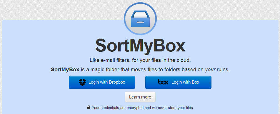 SortMyBox is a free online storage file sorting service which is gonna connect to your Dropbox or Box account, create a folder for itself there, a folder that’s gonna be checked every 15 minutes and every time that you upload files into the created folder, SortMyBox is gonna automatically arrange files according to the rules which you’ve created in your SortMyBox account. In essence SortMyBox is an online file management for online file storage services, two of the most popular ones to be more precise, Dropbox and Box.