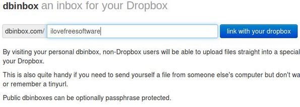 dbinbox is a free online utility which allows you to setup anonymous guest Dropbox upload. After creating an account with the dbinbox website, you’ll get an anonymous Dropbox upload page from where you or anyone else can easily upload files into a special folder of your Dropbox account. You’re of course gonna have to allow dbinbox access to your Dropbox account in order for everything to work as it is supposed to.
