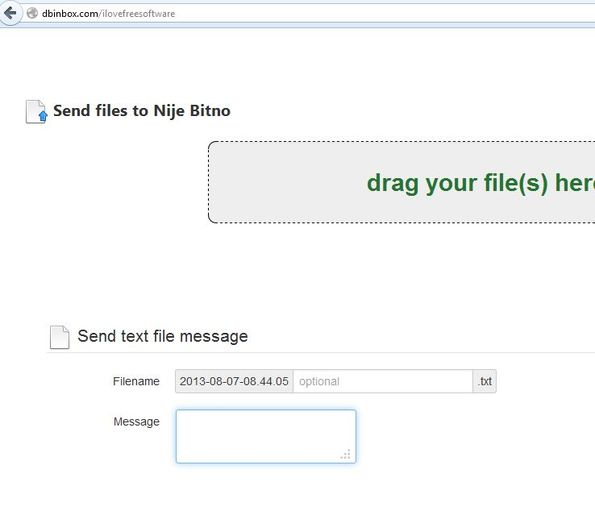 Notice the address bar on the image above. Once you allow dbinbox access to your account, you’re gonna get this same URL only yours will have the username that you’ve selected. On this page, you’ll have the usual file selection menu for selecting the files that you want to upload to Dropbox. You can also send a text message if you want.