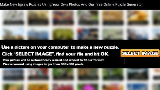 As I mentioned earlier, another good feature of this website is that it lets you create your own jigsaw puzzle online. For that, you need to upload a photo from your computer, and it will convert that to a jigsaw puzzle that you can solve.