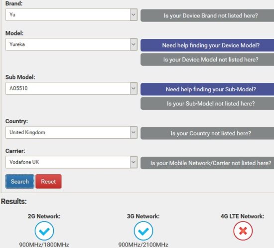 As you can see from the above screenshot, the website tells me that my mobile devices 2G and 3G networks would work in UK under the chosen service provider.