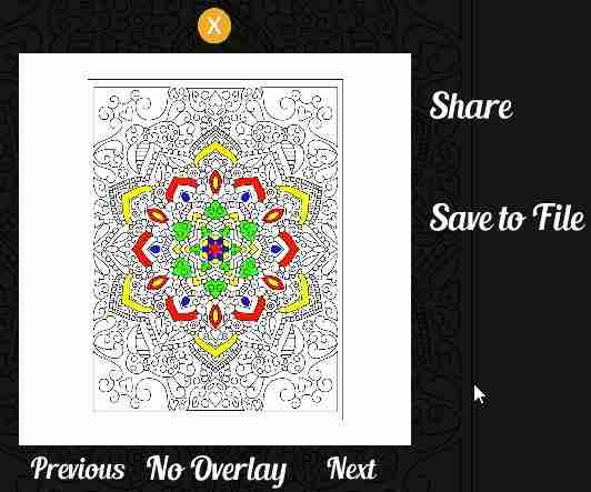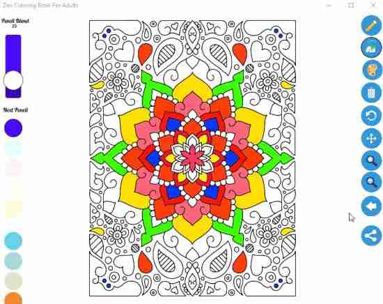 The above screenshot shows a pattern which I colored a bit to try it out. But it was extremely fun to do this. On the left side you can see the color that you are using currently. The slider on the color is used to increase or decrease the intensity of the color. By moving the color slider you can change the color to a darker or lighter shade of the same color.