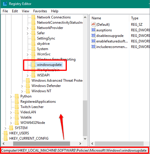 HKEY_LOCAL_MACHINE\SOFTWARE\Policies\Microsoft\Windows\windowsUpdate.
