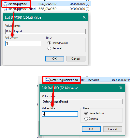 Step 3: Double-click on DeferUpgrade value and set its Value data to ‘1’. After that, double-click on DeferUpgradePeriod value and set its Value data between ‘0-8’. The values are referred as months. So, value 7 means 7 months.