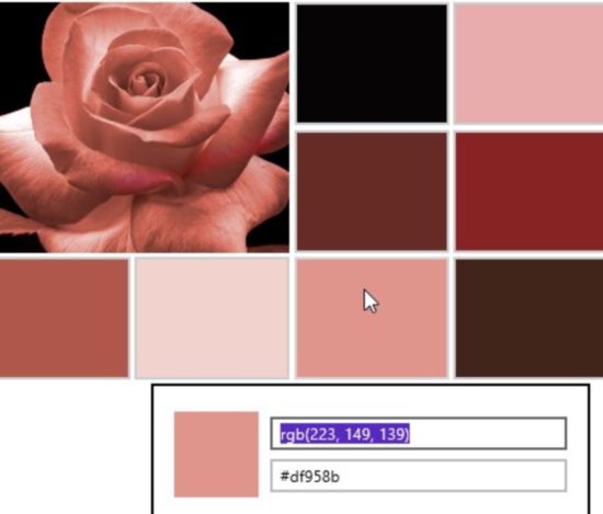 Now to know the RGB or hex value of these colors in the color palette all you need to do is click on a particular color and its RGB and hex value will be displayed in a pop up box. This can be seen in the screenshot below.