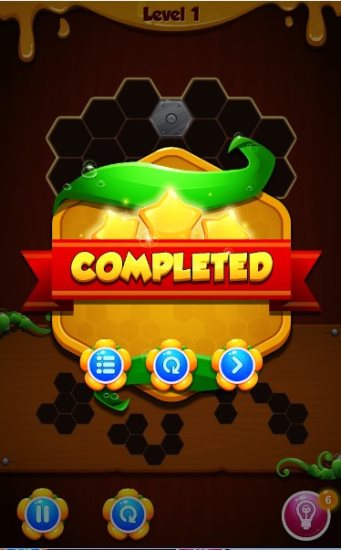 On this game play screen you can see a number of hexagon blocks given at the bottom of the window. You have to press and drag these blocks to move them. Top of the screen shows a structure, where all these blocks need to be fitted. The blocks have to fit in such a way that they do not overlap. Also, you can not rotate the blocks. If the blocks do not fit properly use the reset button to start over. Once the structure is all full, a level up screen will be shown to you.
