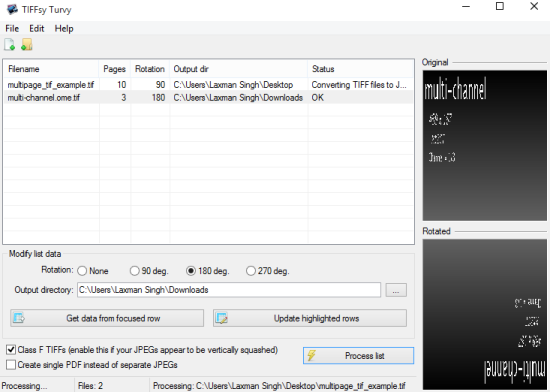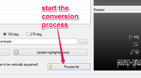Step 3: Set the output directory and hit the Process list button. It will start processing, rotating, and converting all the input files one after another.
