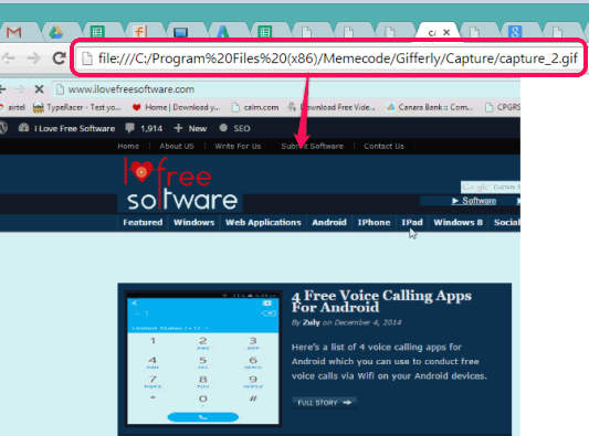 After processing the frames, your gif recording will store to ‘Capture’ folder available on its installation location. Gif recording will also open automatically on your default web browser.