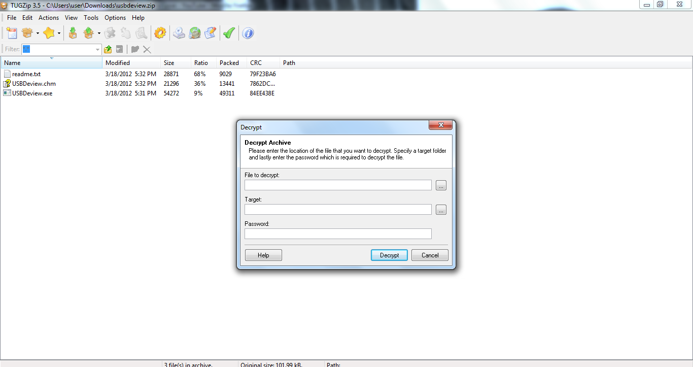Archived files are frequently encrypted to make them secure. Using TugZip, you can decrypt the file and get the contents. The source file which is decrypted must be specified along with the target file. The password which must be entered then to decrypt the archived file.