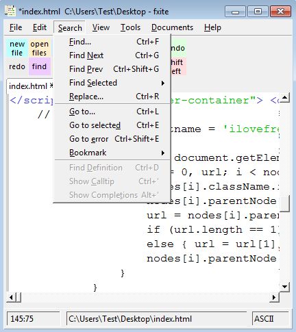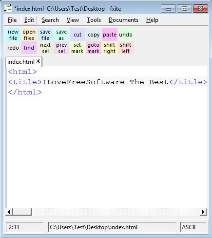 fxite is a free portable cross-platform text editor which you can use in order to easily edit various different document types and it even supports syntax highlighting for all the popular coding languages like HTML, CSS, PHP, Javascript, Python, C++ and dozens more. Very simple interface will greet you when you run this free portable text editor. Next to syntax highlighting, all the other basic functionality is available, like search and replace tool, and some other not so basic, like macro command recording.