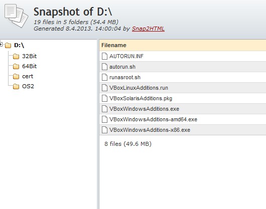 There’s no limitation on how large the folder hierarchy for which you decide to generate a HTML snapshot can be. Technically speaking you could create folder listing snapshots of entire partitions, like we did on the image below, but keep in mind that if there’s a lot of files, it’ll take longer for the HTML file to be generated.