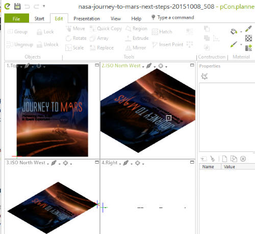 When the PDF page is added, you can see first two camera views to view that page with different angles. You can also use 3rd and 4th angle and select camera view. Available views are front, top, right, left, perspective, bottom, rear, ISO North East, ISO South East, etc.