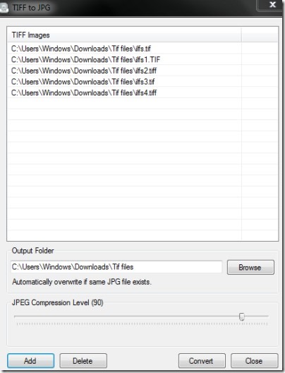 TIFF to JPG is exactly like its name, you can convert bunch of tif and tiff files into jpg image format. But drag n drop support is not available at present which might disappoint you. Still it is useful and you can try it free of cost. Tap on the link below to download it: