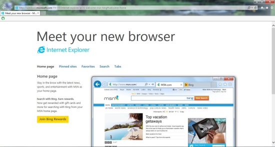 As you land into your new browser for the first time, you would be greeted with a welcome note and brief introduction on its features. These include MSN homepage overview and other options like pinning sites you visit frequently to taskbar, organizing your favorite sites, great search suggestions from Bing, and quick switching between frequently opened tabs.