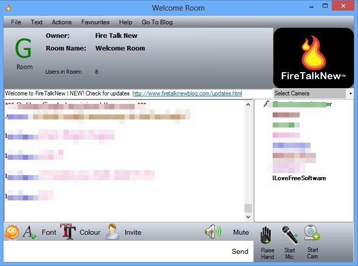 We were surprised to find that after creating a FireTalkNew account and logging in, Welcome Room chat session opened up with music playing in the background. A very lively group chat was under way, commenting on the music that was playing. The music was streamed over the microphone into the chat room. With proper setup, you can also setup something similar for your chat sessions, when you want to share music. Mic and webcam can be started up using the controls in bottom right corner. Key features of FireTalkNew – free instant messaging protocol and chat are: